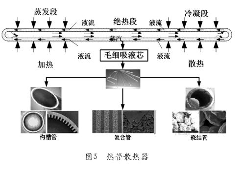 熱管散熱器對比常規(guī)的風(fēng)冷散熱片有所改變,在最貼近CPU部分使用高效的熱管替代常規(guī)金屬基座。熱管是通過封閉的金屬腔體和毛細(xì)吸熱芯,充分利用了換熱工質(zhì)在熱端蒸發(fā)后,在冷端冷凝相變(即利用液體的蒸發(fā)潛熱和凝結(jié)潛熱)和熱傳導(dǎo)原理,使熱量快速傳導(dǎo)透過熱管將發(fā)熱物體的熱量迅速傳遞到熱源外,其導(dǎo)熱能力高于同等質(zhì)量金屬達(dá)到數(shù)量級的級別,而且平板型熱管的熱溫度場均勻,局部換熱量大,成為更佳的散熱解決方案,當(dāng)然成本有所增加。
