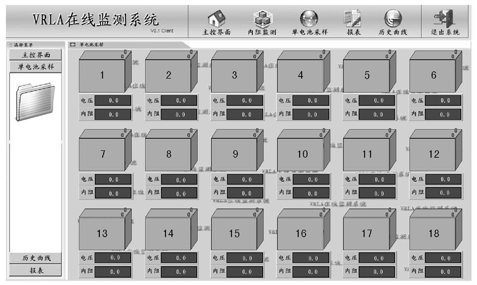為了給VRLA 蓄電池組的查看供給一個(gè)安全牢靠的監(jiān)測(cè)渠道, 將傳統(tǒng)的分離式查看進(jìn)程有機(jī)地聯(lián)系起來, 構(gòu)成一個(gè)快捷、智能型主動(dòng)監(jiān)測(cè)網(wǎng)絡(luò), 完結(jié)對(duì)VRLA 蓄電池組及其單節(jié)電池電壓和內(nèi)阻進(jìn)行實(shí)時(shí)查看, 并能有用判別蓄電池組容量和功用。現(xiàn)擬選用電壓搜集模塊、內(nèi)阻搜集模塊和組態(tài)軟件構(gòu)成實(shí)時(shí)數(shù)據(jù)搜集網(wǎng)絡(luò)體系, 對(duì)VRLA 蓄電池組的運(yùn)用進(jìn)行監(jiān)控, 保證電池組的長時(shí)刻有用作業(yè)。