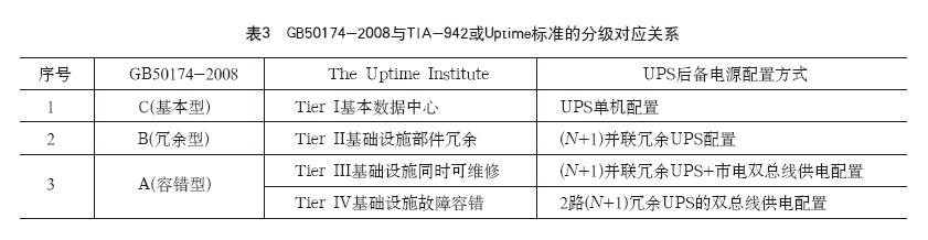 3 TIA或Uptime分級與GB50174-2008分級的關(guān)系