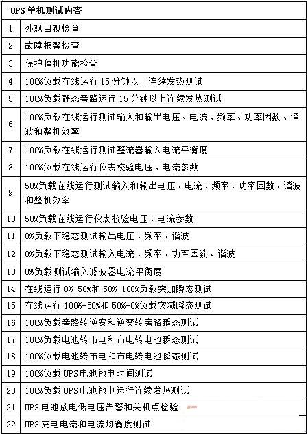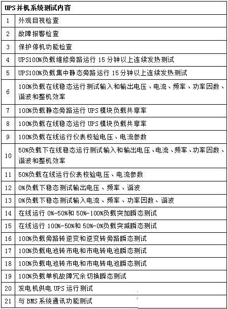 主要的單系統(tǒng)測試包括:高壓系統(tǒng)、低壓系統(tǒng)、不間斷電源系統(tǒng)、發(fā)電機系統(tǒng)、冷卻系統(tǒng)、冷凍系統(tǒng)、控制系統(tǒng)等的測試。