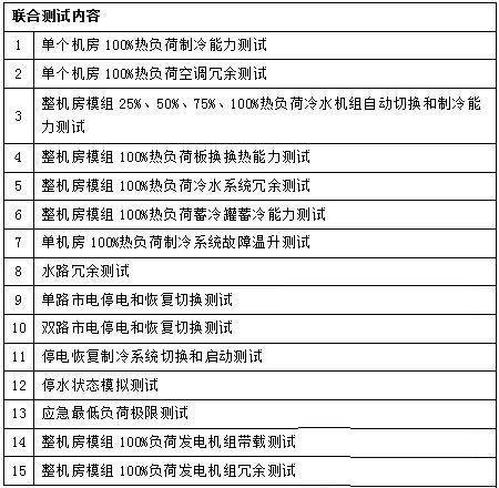 聯(lián)合測試指數(shù)據(jù)中心所有機電系統(tǒng)作為一個整體進行測試,通過全額假負載模擬真實運行時的各種運行狀態(tài)及故障模式時的各種狀態(tài)。進行全額假負載投入的成本非常大,如無法獲得高額預算可減少假負載的數(shù)量,但不能少于25%的帶載量。