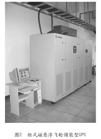 而磁懸浮式飛輪儲能UPS系統(tǒng)則無需空調(diào)來制冷,節(jié)省了運營電費成本;而且,其占用的空間也大幅減小;維護成本低,更不需更換電池;壽命長達20年。圖2是一款柜式磁懸浮飛輪儲能型UPS的外觀: