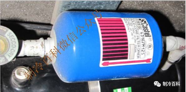 在儲(chǔ)液罐液體的出口處有一帶網(wǎng)過濾器, 內(nèi)裝硅膠、分子篩和活性氧化鋁的混合物 ,用來吸收制冷劑中的水分。