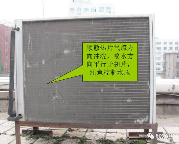 檢查并清理(盤管)下面所有污物,以保證氣流不被阻塞(每年夏季來臨時(shí)用專用清洗液或清水沖洗換熱器面);