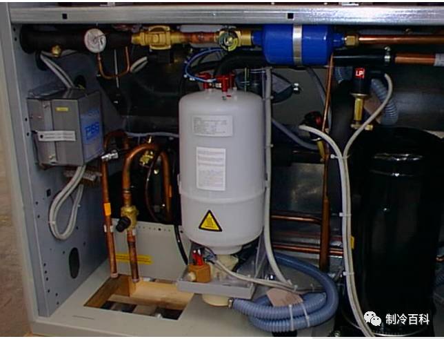 制冷系統(tǒng):壓縮機(jī)、蒸發(fā)器、冷凝器、膨脹閥。此外還有輔助零件:儲(chǔ)液罐、單向閥、視液鏡、風(fēng)機(jī)調(diào)速器、高低壓檢測(cè)開關(guān)、干燥過濾器、管路電磁閥等。