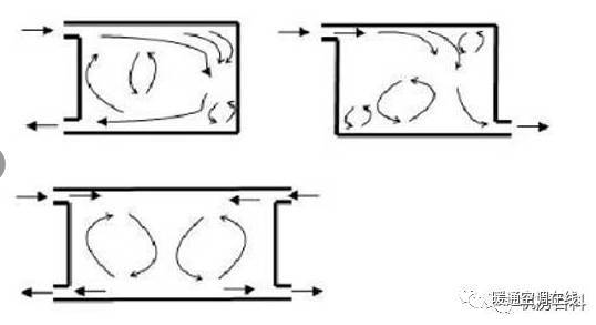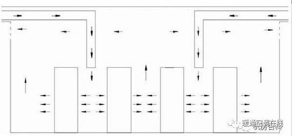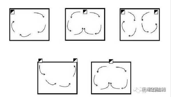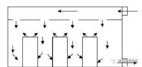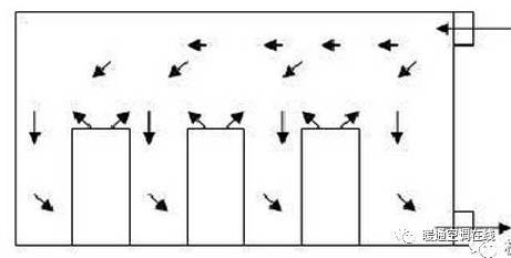 下圖是中部送風(fēng)下部回風(fēng)或下部上部同時(shí)回風(fēng)的氣流流型圖。