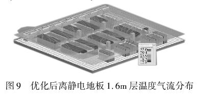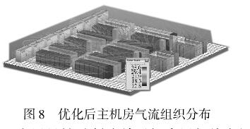 優(yōu)化設計后,用IBM專用CFD軟件進行模擬,分析優(yōu)化后其氣流組織情況如圖8所示,發(fā)現(xiàn)氣流組織良好,氣流混亂問題解決的效果良好,驗證了方案的有效性。