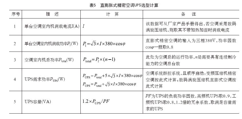 (1)直膨脹式精密空調(diào)UPS選型建議(見(jiàn)表5)