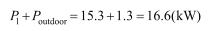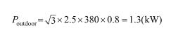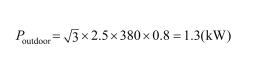例如,假設(shè)在T1工況(溫帶氣候,環(huán)境溫度在-20~45℃),對(duì)于散熱量為38kW風(fēng)冷室外機(jī),其輸入制式為380~415Vac/3Ph/50或60Hz,滿載電流為2.5A,功率因數(shù)取0.8,則室外機(jī)功率為