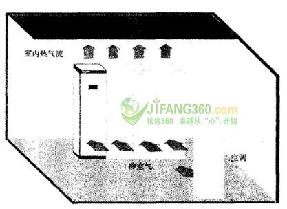 圖2空調(diào)在設(shè)備后面平吹或斜吹示意