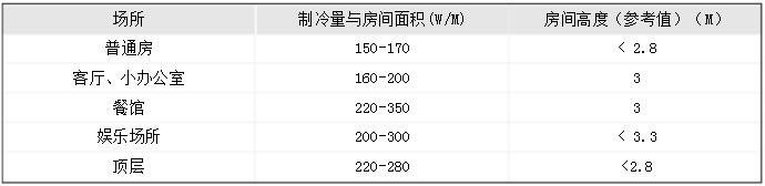 在不同的使用場(chǎng)所,單位面積所需制冷量負(fù)荷有所不同,人員越多,散熱量越大,房間內(nèi)的電器設(shè)備約會(huì)產(chǎn)生熱負(fù)荷。
