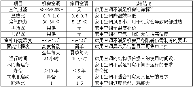 家用空調(diào)的年耗電量是機房專用空調(diào)的1.5倍,按照每臺3P計算,家用空調(diào)每年每臺比機房空調(diào)多花電費5184元。