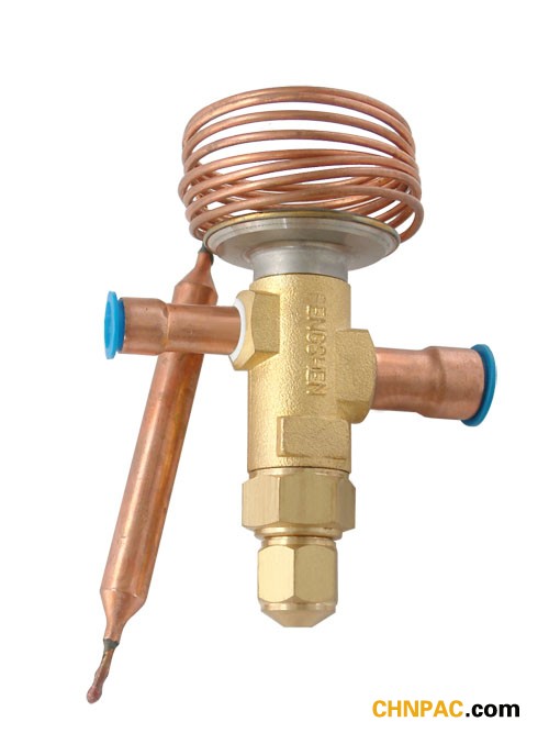 3、脹大閥的品種:(內(nèi)平衡、外平衡) 效果于熱力脹大閥體內(nèi)傳動膜片下部的壓力為節(jié)省后的蒸騰壓力(這一壓力經(jīng)過傳動桿和傳動片的縫隙而進入膜片下部分空間)這種結(jié)構(gòu)稱為內(nèi)平衡式脹大閥。 效果于熱力脹大閥體內(nèi)傳動膜片下部的壓力不是節(jié)省后的蒸騰壓力,而是經(jīng)過外接平衡管將蒸騰器出口端的壓力引進傳動膜片下部空間結(jié)構(gòu)的閥門、稱為外平衡式熱力脹大閥。 與內(nèi)平衡式脹大閥比較,外平衡式熱力脹大閥的過熱度要小得多,所以選用外平衡式熱力脹大閥時,能充分發(fā)揮蒸騰器的傳熱面積的效果和進步制冷設(shè)備的效果,在蒸騰器阻力較小、壓力丟失不大的情況下,可選用內(nèi)平衡式熱力脹大閥;當蒸騰阻力較大,壓力丟失比較大或具有液體分配器時,應(yīng)選用外平衡式熱力脹大閥。選用分配器的,一般都選用外平衡脹大閥。 在專用空調(diào)機中選用的通常是外平衡式熱力脹大閥。熱力脹大閥雖僅僅一個很小的部件,但它在制冷體系中的效果必不可少,所以它與制冷緊縮機、蒸騰器、冷凝器、并稱為制冷體系四大部件。
