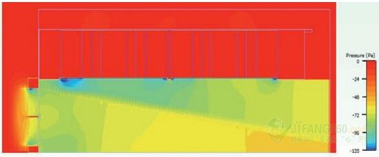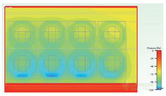 圖4:風(fēng)扇進氣口的靜態(tài)壓力(0.2立方米/秒)。