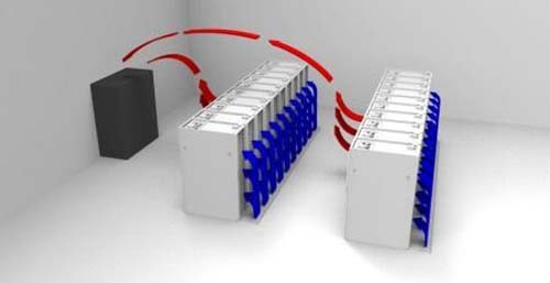 關(guān)于此種狀況,在出風(fēng)口設(shè)備自動(dòng)出風(fēng)設(shè)備—ADU,ADU上裝有兩個(gè)或四個(gè)EC風(fēng)機(jī),風(fēng)機(jī)能夠依據(jù)機(jī)柜的負(fù)載狀況進(jìn)行轉(zhuǎn)速調(diào)速。經(jīng)過(guò)這種自動(dòng)送風(fēng)設(shè)備,能夠進(jìn)步空調(diào)送風(fēng)功率,這么就能夠在滿(mǎn)意制冷量及風(fēng)量的需求狀況下,削減空調(diào)開(kāi)機(jī)的臺(tái)數(shù),到達(dá)節(jié)能的作用。